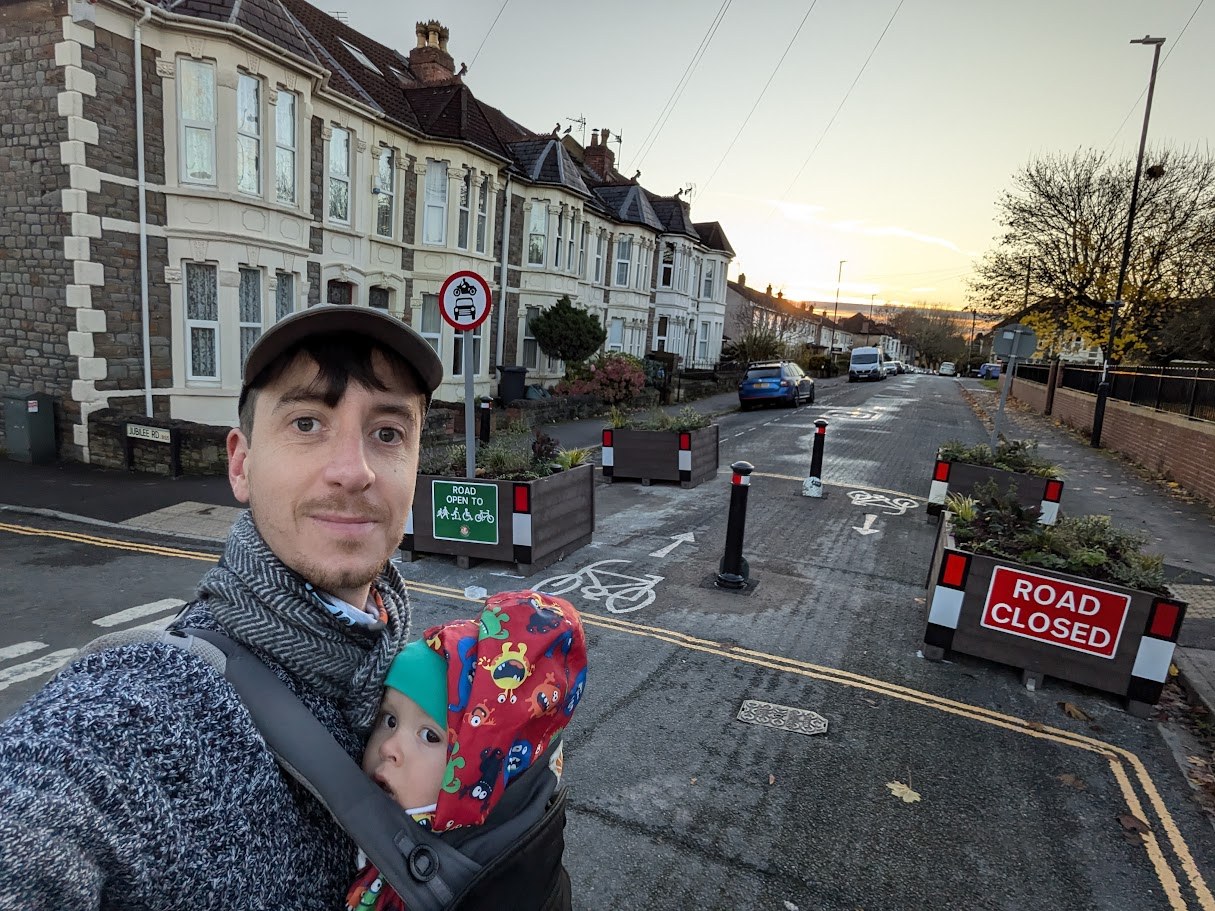 Beaufort Rd will also get a 'pocket park' / modal filter to create a safe corridor for active travel. (photo from The Bristol Cable, page)